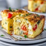 After baking, let your strata rest for 5 to 10 minutes. This brief pause allows everything to settle and firm up, making it easier to slice and enjoy perfectly layered, warm, and inviting servings. Now you’re ready to dig in!