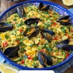 - Serve and Garnish: Garnish the paella with fresh chopped parsley and lemon wedges. Optionally, for a classic socarrat crust, increase the heat during the last 2 minutes of cooking without stirring to achieve a crispy bottom layer. Serve immediately and enjoy.