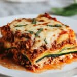 This Zucchini Lasagna is a low-carb, delicious twist on the traditional Italian favorite, replacing pasta sheets with thinly sliced zucchini for a lighter yet satisfying meal. Layers of seasoned ground beef, rich ricotta, and melty mozzarella come together in a savory pasta sauce, baked to bubbly perfection and topped with Parmesan cheese. Perfect for a hearty dinner that’s both comforting and nutritious.
